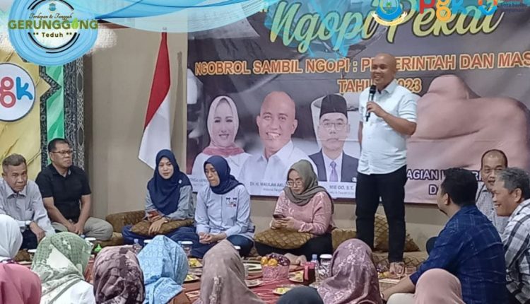 Walikota Pangkalpinang Bpk. H. Maulan Aklil, S.IP, M.Si Bersama Ketua Tim Penggerak PKK Kota Pangkalpinang Ibu Monica Haprinda, S.IP, M.Si hadir dalam Kegiatan “Ngopi Pekat” ngobrol sambil ngopi, pemerintah dan masyarakat yang bertempat di Kantor Camat Gerunggang.